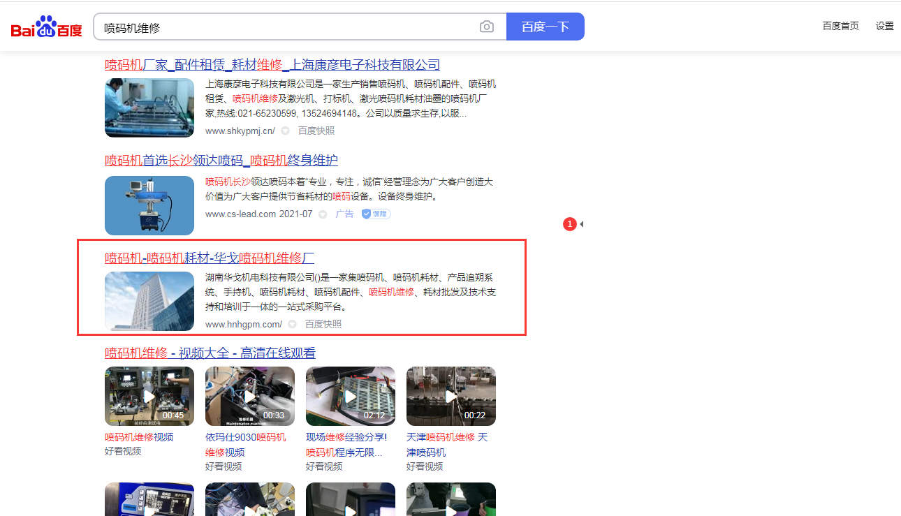 湖南華戈機電科技有限公司在我公司做完網(wǎng)站后,負責人肖總需要做網(wǎng)站關鍵詞排名優(yōu)化,我們繼續(xù)簽訂關鍵詞合同優(yōu)化“噴碼機,噴碼機維修,噴碼機配件,噴碼機耗材”等詞,目前關鍵詞優(yōu)化都上首頁,只有噴碼機還在努力排名中。